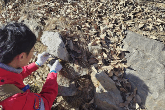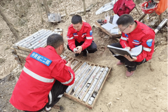 隆冬寒愈劲,钻进意志坚。旬阳县李家院子一带金红石矿普查项目钻探施工现场,技术人员正争分夺秒地开展钻探编录工作。他们身处险峻陡坡面开辟的狭小施工平台上,一边跟踪督导钻探施工安全、质量与进度,一边小心翼翼地排列整理岩芯,认真地进行岩芯观察与编录,仿佛在解读大地深处的密码。每一个数据的记录,都倾注着他们对工作的严谨和专注。在采集劈心样时,队员们的双手被冻得僵硬,工具在手中也变得不听使唤,但他们凭借着丰富的经验和顽强的毅力,精准地切割好每一块样品,仔细编码并记录下其特征。刚参加工作不久的杨哲,是李家院子项目组的一员,他说:“这是我第一次在冬天参与野外地质勘查工作,山上真的特别冷,但也让我学到了很多书本上学不到的知识。前辈们特别照顾我,耐心教我专业技能,传授工作经验,就像老一辈地质工作者常说的‘纸上得来终觉浅,绝知此事要躬行’,我很珍惜工作中的实践实操机会,希望能为项目出一份力。”
