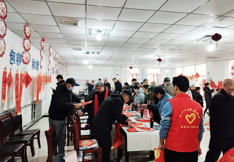 活动现场热闹非凡,公司爱好书法的老师们齐聚一堂,备好笔墨纸砚,挥毫落纸如云烟。一幅幅寓意吉祥的春联在他们笔下一气呵成,既有“乙巳呈祥龙舞瑞,新春送福鹊登枝”这般展现蛇年生机与希望的对子,也有寄托家庭美满愿景如“家和人顺福星照,业旺年丰好运来”的佳作,引得围观群众阵阵赞叹。志愿者们穿梭在人群中,帮助大家晾春联、取春联、拍照片等等。职工和居民们脸上洋溢着幸福的笑容,大家或是驻足欣赏书法之美,或是满怀期待地等待着属于自己的定制春联。拿到春联的居民开心地说:“这手写的春联比买的有意义多了,还能自己定内容,公司工会真是太贴心啦,感觉年味儿一下就浓了!”整个老年活动中心欢声笑语不断,温馨四溢。