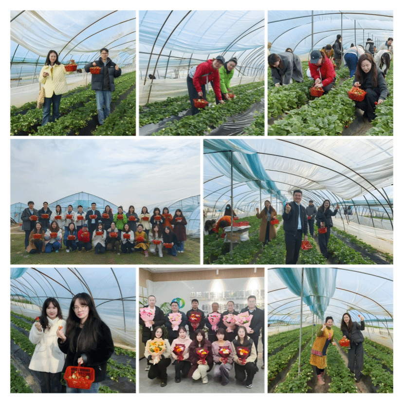 阳光明媚的清晨,女职工们满怀期待地走进大自然,开启了一场以 “春日‘莓’好时光,致敬女性力量” 为主题的户外活动。在草莓采摘区,繁茂的草莓田垄间,女职工们身姿轻盈,她们精心挑选,亲手摘下一颗颗色泽鲜艳、香甜多汁的草莓。每一次弯腰采摘,都伴随着收获的喜悦与满足的笑容。