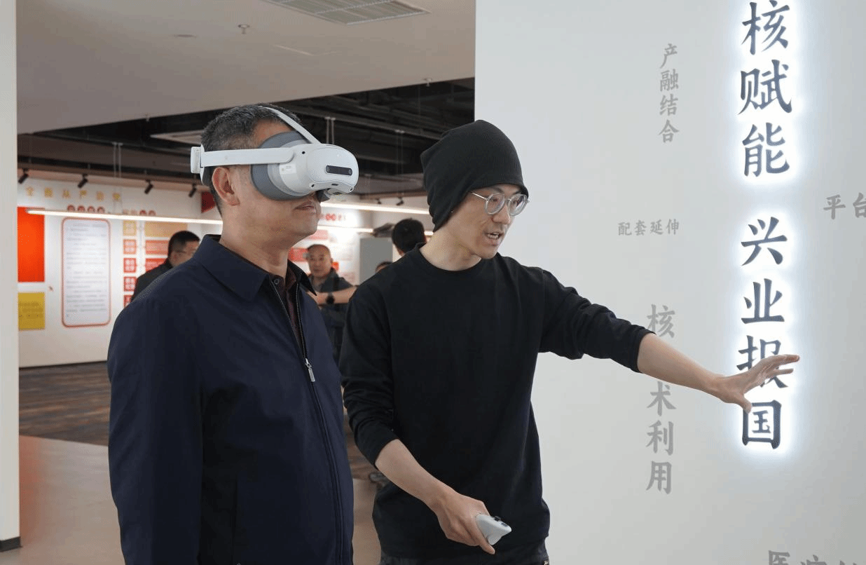 调研团首先参观了秦洲核安的数字化展厅,对公司的发展历程、业务布局、项目成果与合作客户有了基本的了解,并实地体验了秦洲核安基于虚拟仿真及混合现实技术,利用“MR大空间”“MR手势自然交互”底层核心功能,开发的一系列核与辐射科普产品。