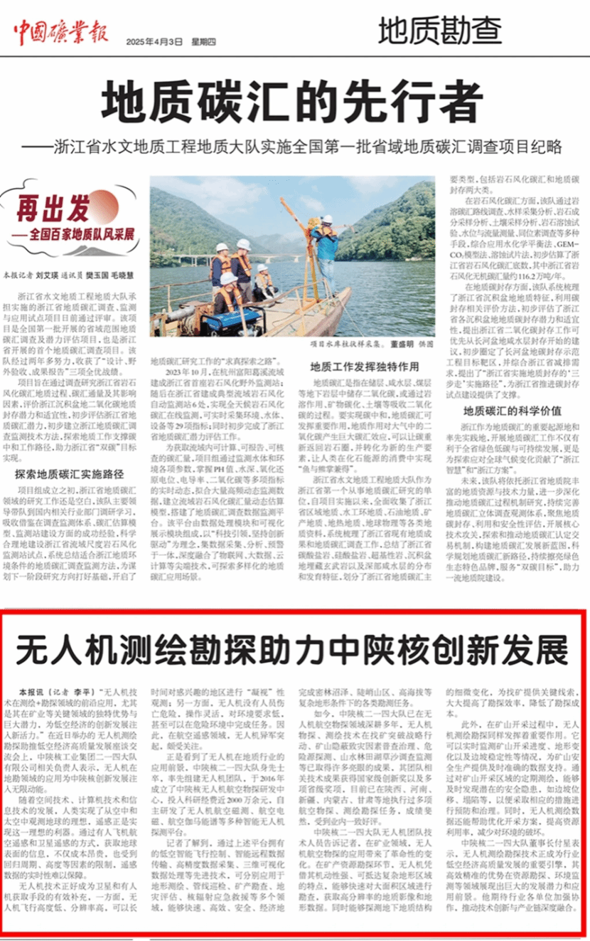 如今,中陕核二一四大队已在无人机航空物探领域深耕多年,无人机物探、测绘技术在找矿突破战略行动、矿山隐蔽致灾因素普查治理、危险源探测、山水林田湖草沙调查监测等已取得许多亮眼的成果,其团队相关技术成果获得国家级创新奖以及多项省级奖项,目前已在陕西、河南、新疆、内蒙、甘肃等地执行过多项航空物探、测绘勘探任务,成绩斐然,受到业内一致好评。