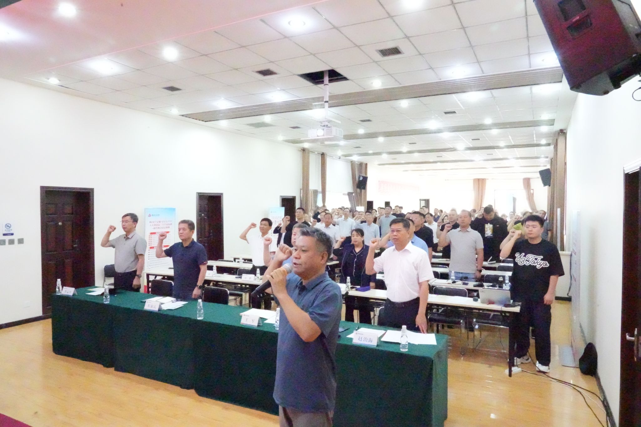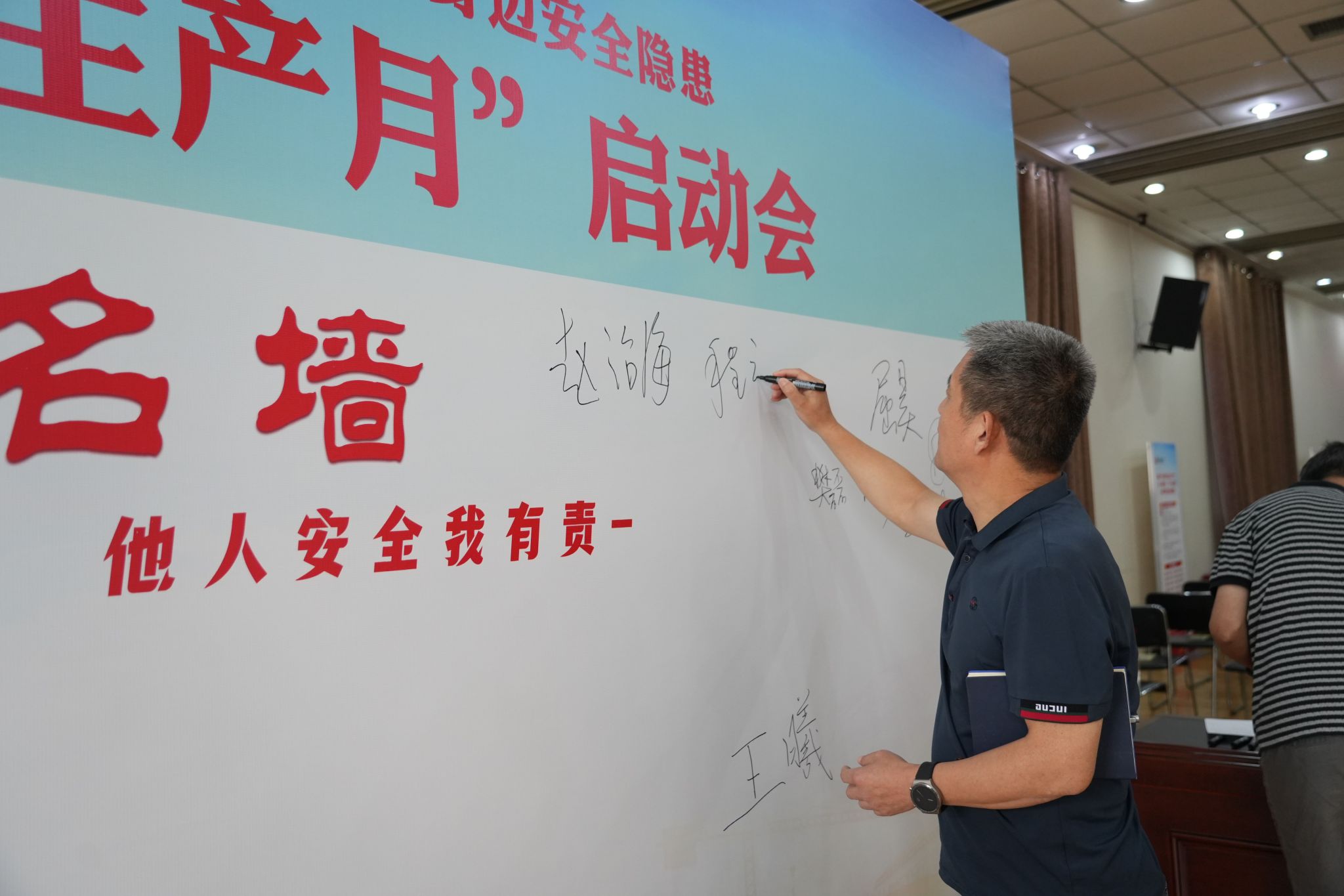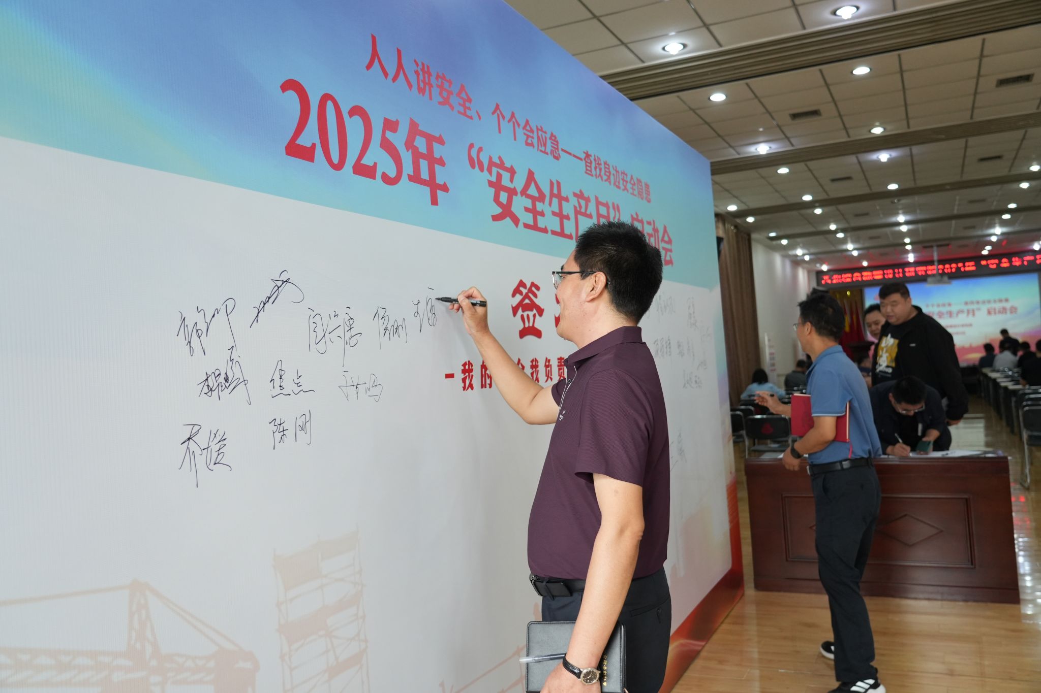 会议组织参会人员学习了《院2025年“安全生产月”活动实施方案》和安全公开课,观看了安全生产警示教育专题片,举行了“安全签名墙”签名仪式并进行集体宣誓。
