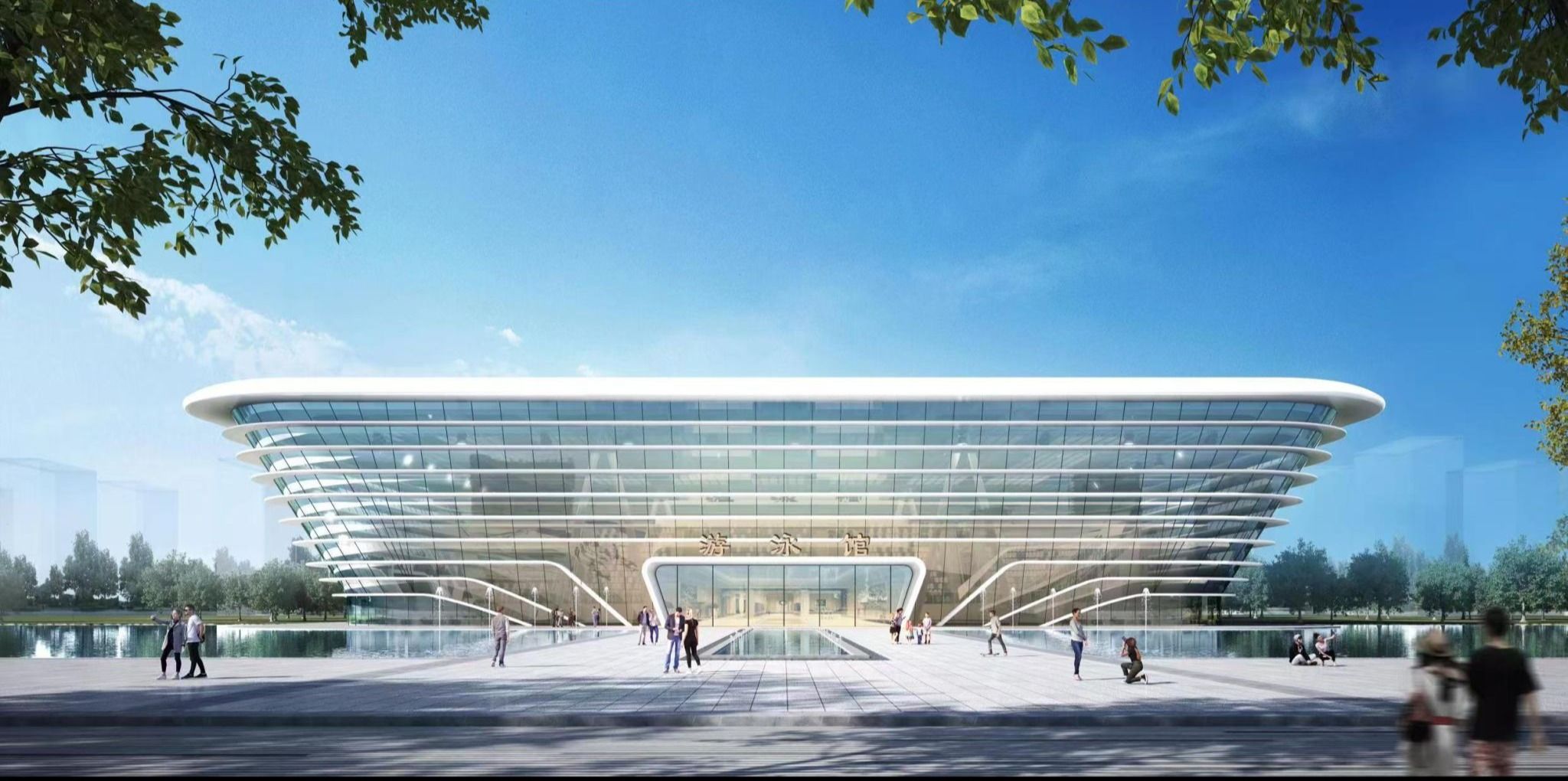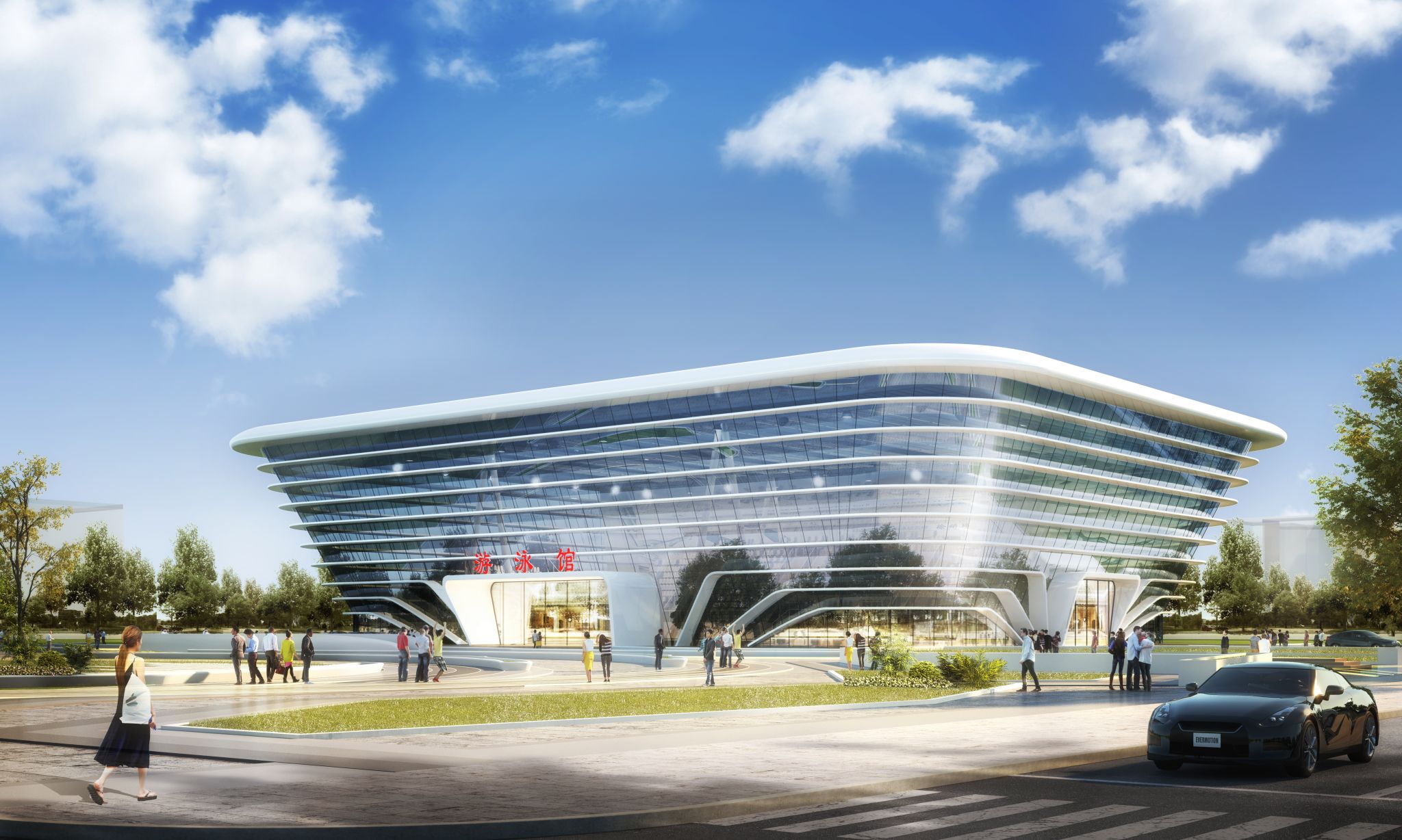项目以“方圭圆璧、盛世潼关”为核心理念,强调建筑整体风格协调统一,一方面呼应潼关特有的沟壑地貌地势,另一方面从传统建筑中提取了造型元素,从潼关古城屋顶提取飞檐元素,立面提取拱窗元素,用现代手法加以诠释,营造曲型屋面、拱形入口。同时对建筑所有转角的部分进行倒角处理,呼应水表面的“柔与圆润”,将立面竖向杆件加入内嵌式“波纹”的元素,打造韵律感。