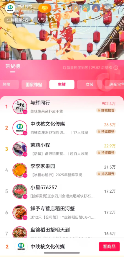 活动还获得抖音本地生活的鼎力支持,有效放大了留坝特色民宿的品牌魅力与文旅价值。此次活动不仅提升了留坝的文旅影响力,更通过展现家乡之美增强了当地居民的自豪感和幸福感。活动期间,留坝相关民宿销售排名强势冲入抖音全国酒店热榜前十,取得亮眼成绩。此次合作实现了抖音平台与陕核传媒的双赢,不仅显著提升了区域品牌影响力,更探索出了一条“数字平台+在地文化”相互赋能的新路径。