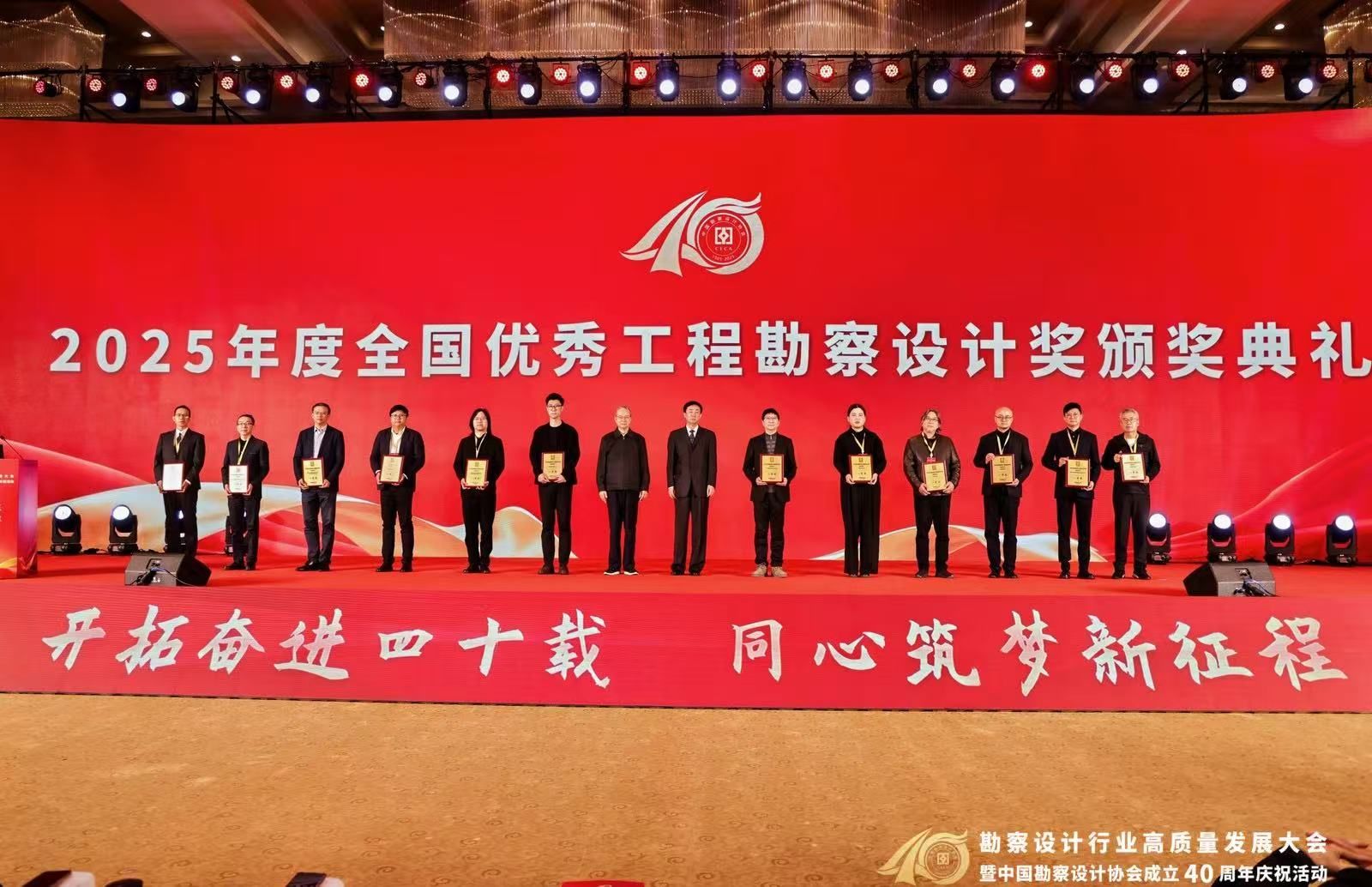 11月28日,勘察设计行业高质量发展大会暨中国勘察设计协会成立40周年庆祝活动在北京举行,大会发布《关于公布2025年度中国勘察设计协会全国优秀工程勘察设计奖获奖项目的通知》(中设协字〔2025〕99号),公布2025年度全国优秀工程勘察设计奖评选结果并举行颁奖典礼。中国勘察设计协会副理事长,中陕核集团总工程师,西北综勘党委书记、董事长燕建龙受邀参加大会。