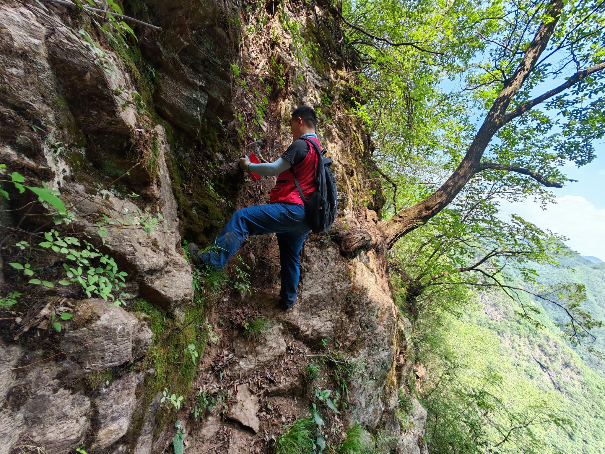 这份孤独中的坚守,是与亿万年岩层的虔诚对话。野外勘查危险常伴:曾攀上近乎垂直的岩坡采集样本,脚下碎石松动而身后是百米深谷;曾半悬陡坡边缘、身体探出车窗外,只为获取未受风化的新鲜露头。这些无人见证的场景,彰显着地质人“向险而行”的担当。
