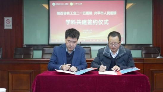 12月23日,中陕核二一五医院与兴平市人民医院举行学科共建合作签约仪式。兴平市人民医院院长史亚峰、党委书记宇文思;咸阳医疗中心党委书记、主任,陕西省核工业二一五医院院长任超杰、党委书记左毅出席仪式。仪式由二一五医院党委委员、副院长沈乃营主持。
