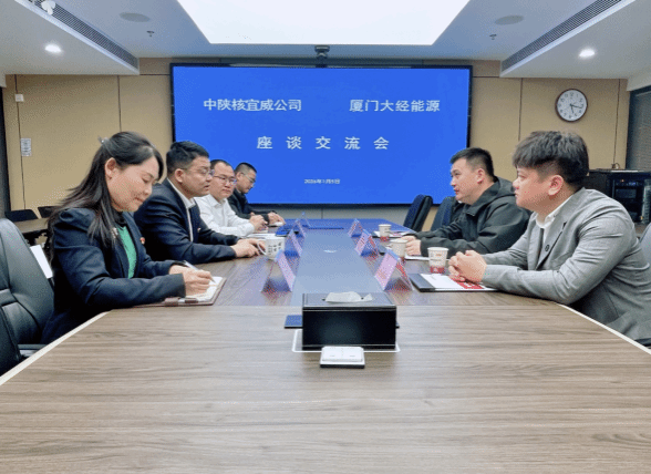 1月5日,厦门大经能源科技有限公司董事长黄镇一行到中陕核宜威公司座谈交流,宜威公司董事长何厚锦出席座谈。双方聚焦新能源行业发展趋势、业务资源互补及未来合作路径等内容深入磋商,共话发展机遇、凝聚合作共识。