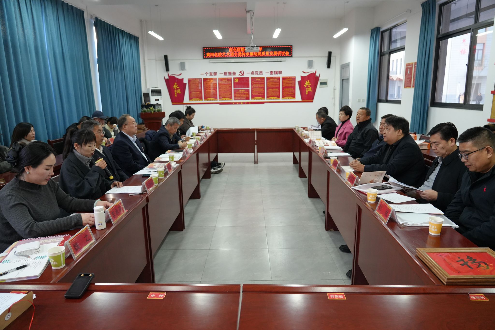研讨会汇聚潼关县、西北综勘、黄河老腔艺术团、滨河小学及非遗传承领域的多位领导和专家学者,聚焦以西北综勘黄河老腔艺术团非遗传承赋能高质量发展这一核心主题展开深度研讨,梳理过往成果、分析当前形势、谋划未来路径,共话黄河老腔传承新路径,共商文化赋能发展新蓝图。