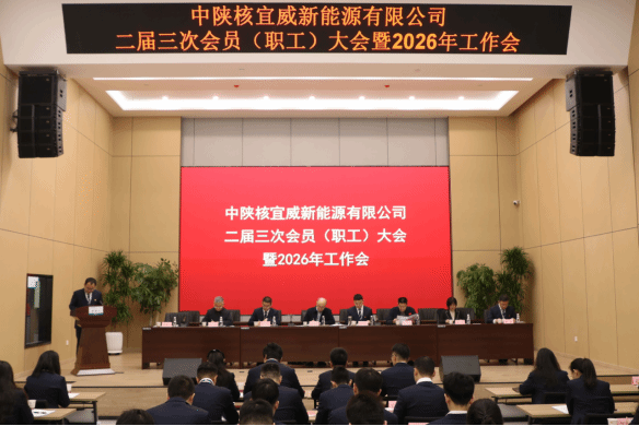 1月30日,中陕核宜威新能源有限公司召开二届三次会员(职工)大会暨2026年工作会。中陕核集团党委委员、纪委书记、监察专员蒙晓记,纪委工作部副部长、巡察办主任崔秦蜀到会指导。宜威公司党支部书记、董事长何厚锦,党支部委员、总经理陈晶及外部董事和其他领导班子成员、全体职工参加会议,党支部委员、副总经理、工会主席蔺啸宇主持会议。