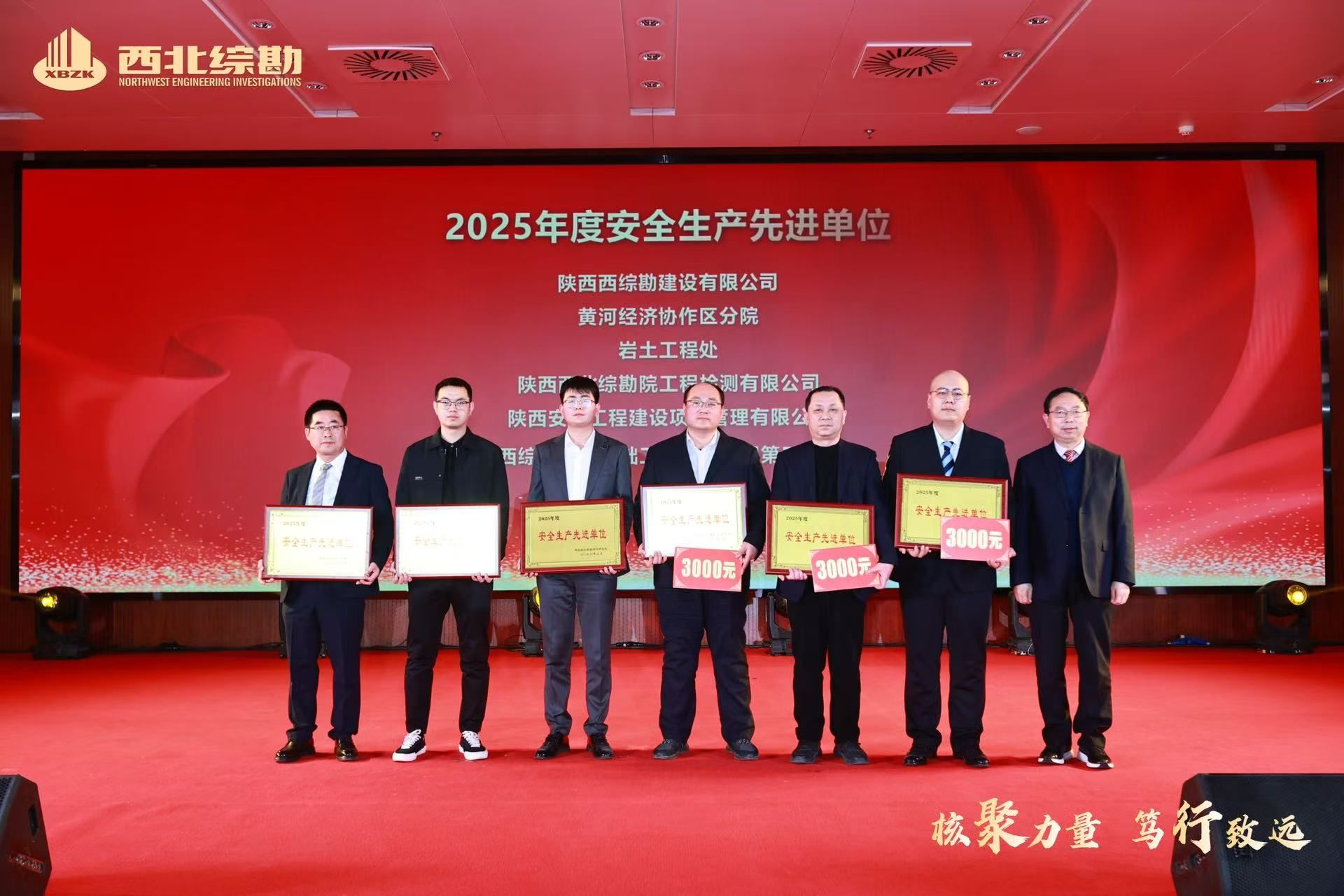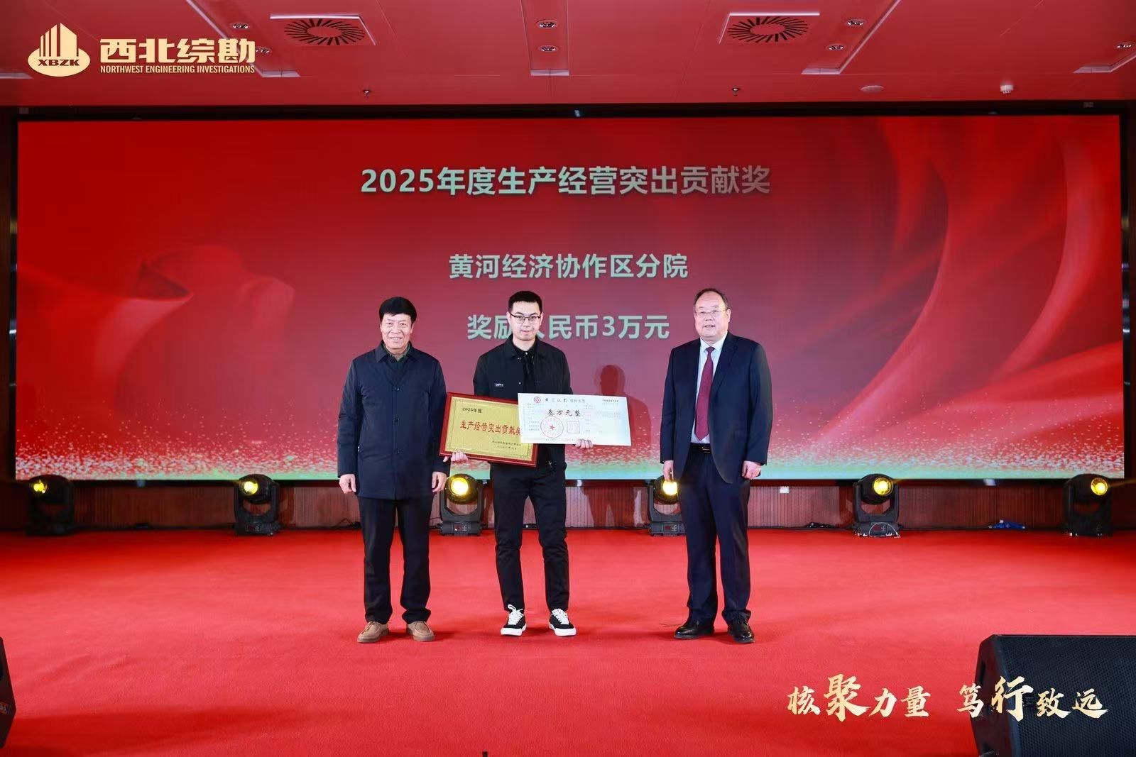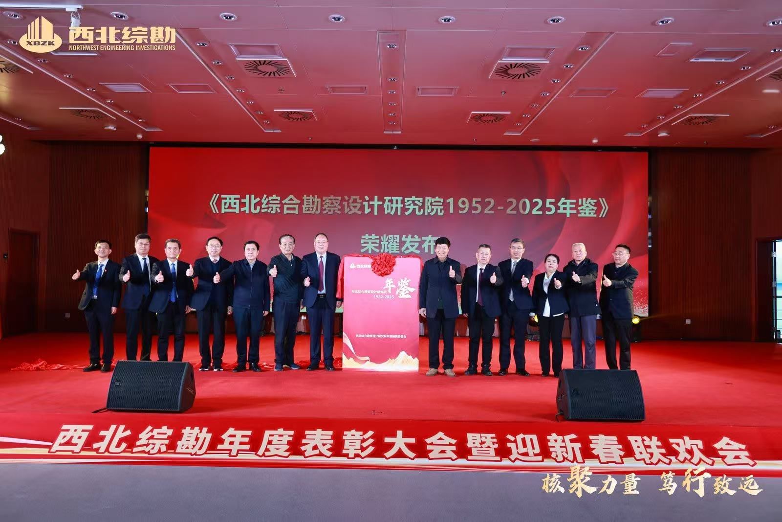 2026年2月3日下午,西北综勘举办“核聚力量 笃行致远”年度表彰大会,共同回顾发展成果,发布了《西北综合勘察设计研究院1952-2025年鉴》,表彰了2025年度各类先进集体和个人,凝聚奋进力量,为新一年高质量发展吹响冲锋号角。陕西省慈善协会副会长张文亮,陕西省城市燃气热力协会原党支部书记刘亚明,陕西省建设工程造价协会党支部书记顾群受邀参加了会议。