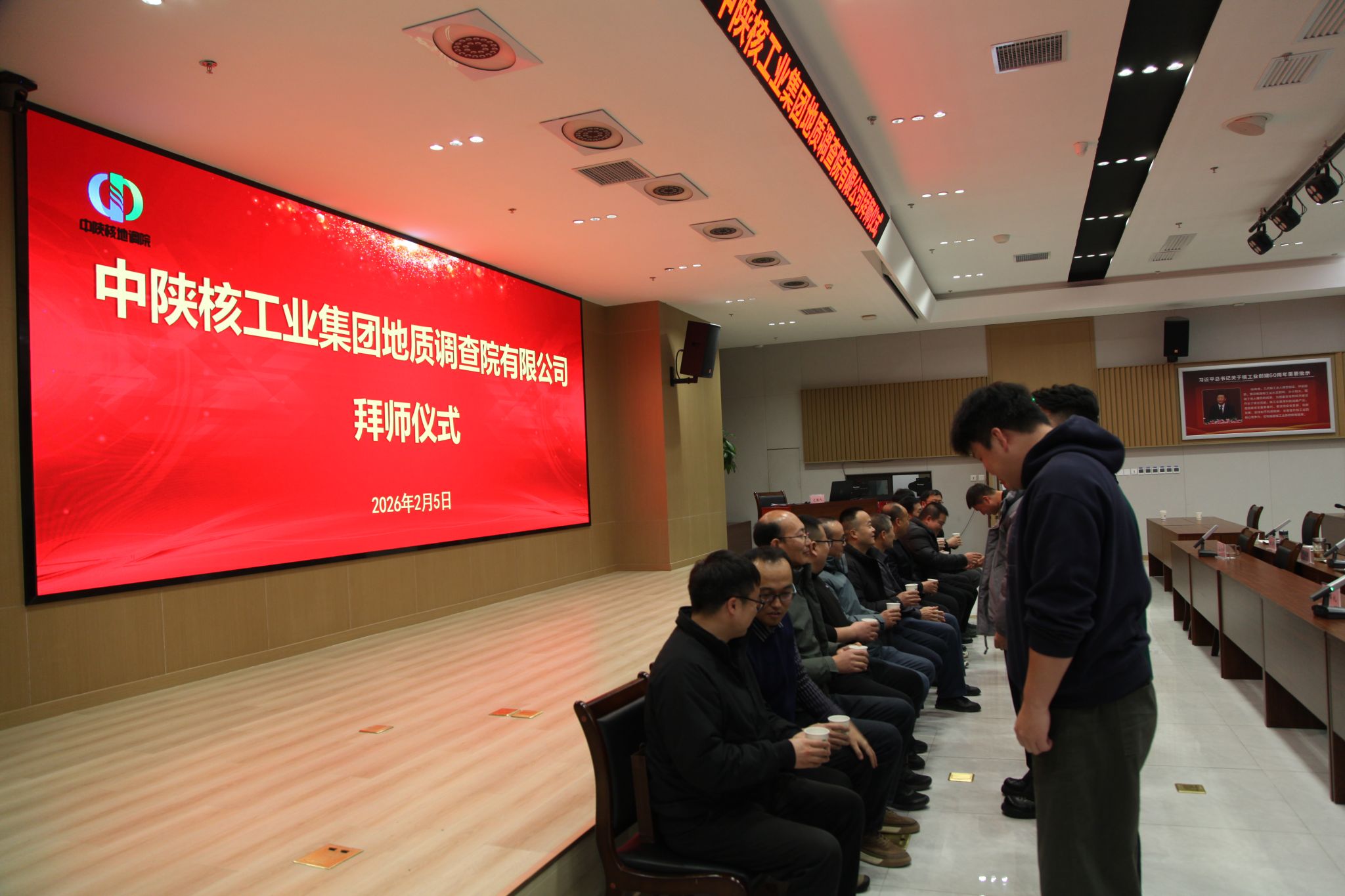 2月5日下午,中陕核地调院在集团二楼综合会议室举办新进技术人员拜师仪式。全体技术人员受邀观礼,共同见证12对师徒开启携手共进的成长之旅。