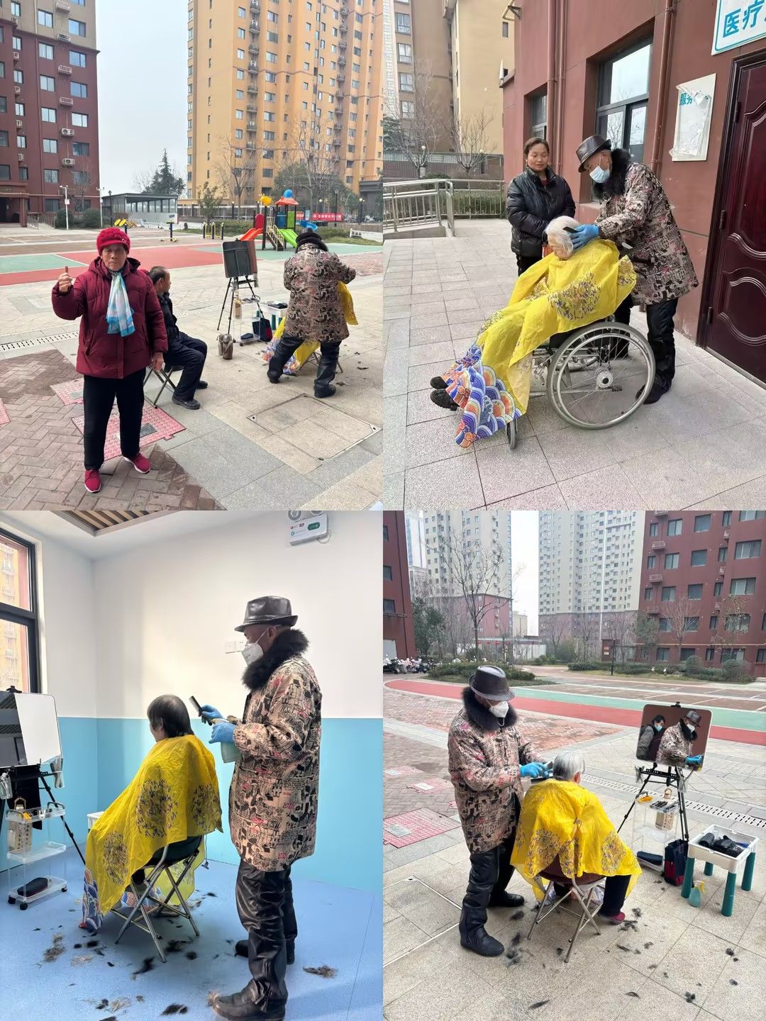 上午九点,活动正式开始。老年业主们陆续来到现场,物业工作人员热情地引导大家签到、等候,为等候的老人端上热水,陪他们拉家常、话新春。理发师们耐心细致地与每位老人沟通发型需求,根据老人的年龄、脸型和喜好设计合适的发型。剪发过程中,理发师动作娴熟轻柔,一边修剪一边询问老人的感受,不时叮嘱日常护发小常识;物业工作人员则在一旁帮忙递工具、整理衣物,现场氛围温馨而融洽。