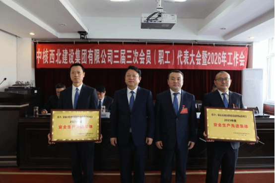会议传达了中陕核集团三届三次会员(职工)代表大会暨2026年工作会精神,顺利完成工会委员会委员补选,代表们审议并通过了西北建工作报告、工会工作报告,大会还就西北建党建工作、安全环保工作作了报告。签订了《2026年党风廉政责任书》《2026年经营目标责任书》《2026年安全环保责任书》。会议对2025年度各类先进进行了表彰。