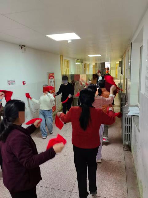 在温馨的氛围中,患者们的才艺展示将活动推向高潮。黄先生主动登台,深情献唱《感恩的心》,用歌声表达对医护人员的感谢,赢得阵阵掌声。随后,周艳芳护士带着大家一起扭秧歌,陕北秧歌欢快的节奏瞬间点燃全场,患者们跟随节奏舞动,欢声笑语回荡在活动室内,展现出积极乐观的精神风貌。