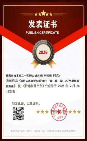 近日,在“新春健康守护,科普陪您过大年”科普大赛中,陕西省核工业二一五医院创伤骨科、小儿骨科专业朱东梅、鲜红梅共同撰写的科普文章《为卧床患者舒心解“秘”:“饮、食、动、养”全周期康复指南》荣获二等奖。这份荣誉,不仅是对我院护理人员专业素养的肯定,更是医院数十年来深耕健康科普沃土的生动缩影。