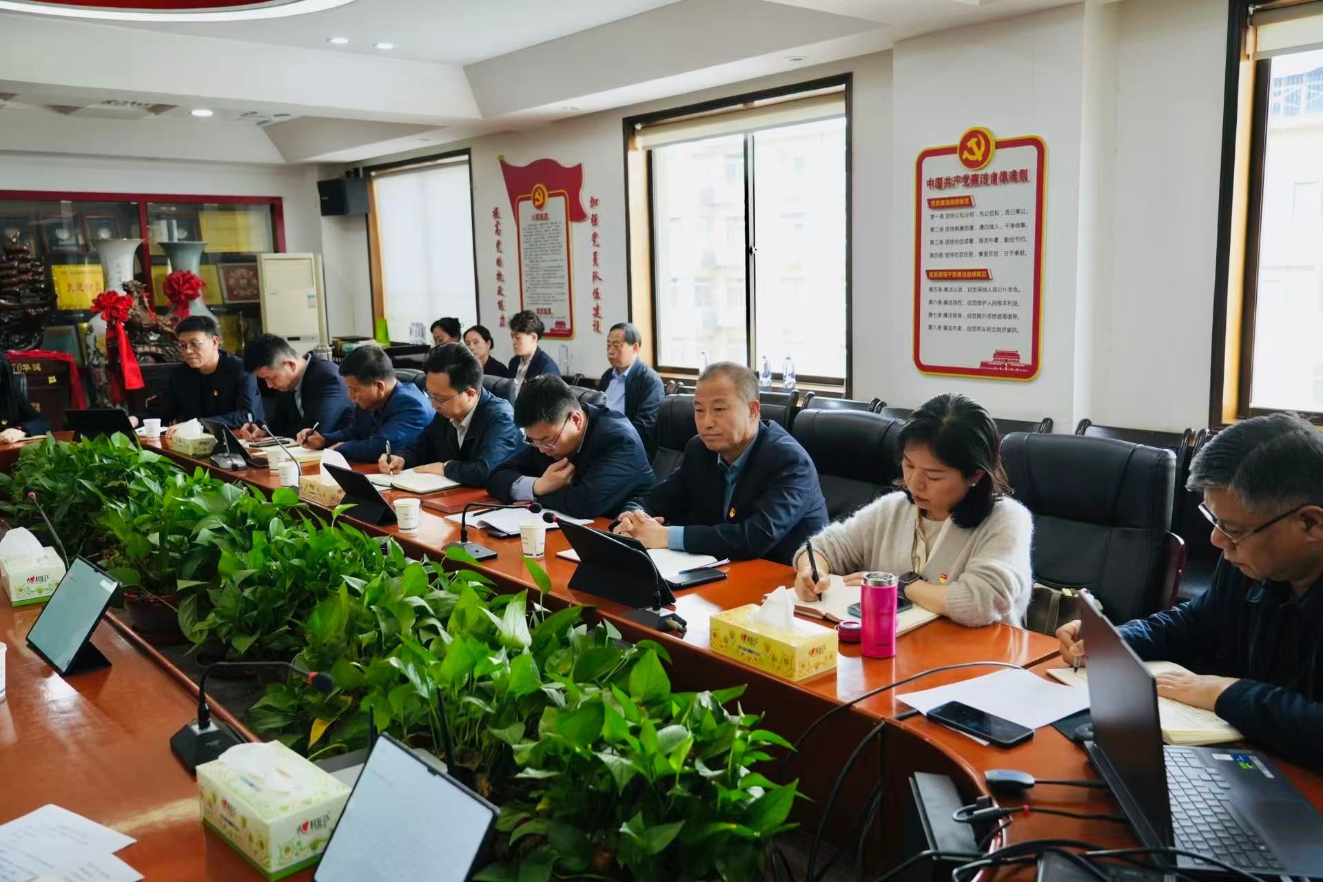 4月3日,西北综勘召开党委理论学习中心组学习(扩大)会议,学习习近平总书记在雄安新区考察时的重要讲话精神、学习习近平总书记关于树立和践行正确政绩观的重要论述、学习新修订的《国有企业领导人员廉洁从业规定》,院法律顾问做了题为《新修订公司法背景下国有企业治理与特殊制度解析》的专题讲座。西北综勘党委中心组成员和各职能处室负责人参加了学习,并结合院实际开展交流研讨。