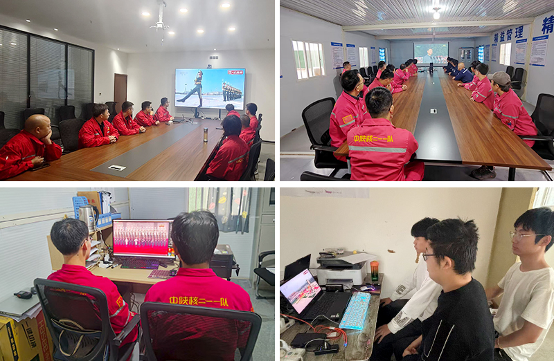新疆分公司党支部对此次活动高度重视,来自不同地方项目部的员工分别在各项目部会议室提前周密安排,同步观看阅兵直播。当激昂的《义勇军进行曲》奏响时,鲜艳的五星红旗缓缓升起,全体员工自发面向国旗方向庄严肃立,眼神中满是崇敬与自豪。随着阅兵分列式的进行,徒步方队迈着铿锵有力的步伐依次通过,他们挺拔的身姿、整齐划一的动作,展现出中国军人的铁血担当;国产新型坦克、导弹等装备方队缓缓驶过,精良的武器装备彰显着我国日益强大的国防实力;空中梯队呼啸而过,战机编队在空中留下绚丽的轨迹,引得现场员工频频惊叹。