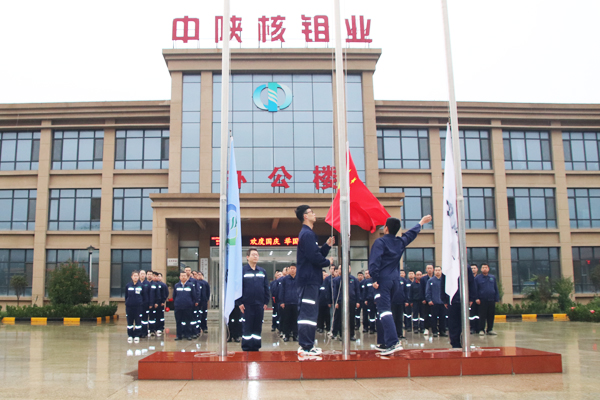 9月28日,为庆祝祖国74周年华诞,中陕核钼业有限公司举行“同升国旗、喜迎国庆”活动,共60余名干部职工参加升旗仪式,以此祝愿祖国繁荣昌盛、国泰民安。 上午7时10分,钼业公司干部职工冒雨齐聚办公楼广场,满怀憧...