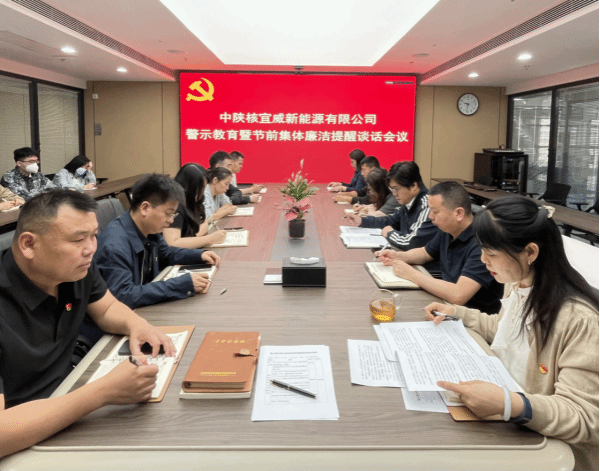 为深入贯彻落实中央八项规定及其实施细则精神,进一步增强干部职工廉洁自律意识,筑牢拒腐防变思想防线,4月28日,中陕核宜威公司组织召开2025年五一、端午节前警示教育暨集体廉洁提醒谈话会议。公司党支部书记、董事长何厚锦出席会议并讲话,全体党员、非党员中层干部及关键岗位人员参加。 会议传达学习了习近平总书记关于中央八项规定精神的重要论述摘编,中央纪委国家监委公开通报的十起违反中央八项规定精神典型问题和中陕核集团相关文件精神。...