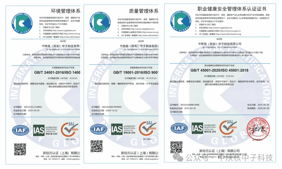 中陕核(西安)中子科技有限公司近日正式通过质量管理体系、环境管理体系、职业健康安全管理体系认证,标志着公司在规范化、标准化、科学化管理轨道上迈出关键一步,为高质量发展奠定坚实基础。此次认证涵盖公司核心业务全流程,从研发设计到生产制造,从环境管控到员工安全,均严格遵循国际标准要求。自认证工作启动以来,质量部协同研发、生产、市场、商务及综合业务部等部门,建立跨职能协作机制,围绕“目标分解、责任绑定、闭环验证”...