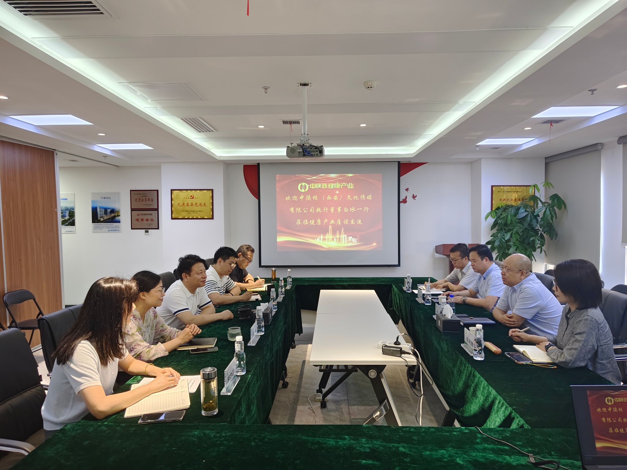 6月5日上午,中陕核(西安)文化传媒有限公司(以下简称“陕核传媒”)执行董事白冰一行到健康产业进行座谈交流,健康产业党总支书记、董事长李来柱出席座谈。会上,李来柱对白冰一行的到访表示热烈欢迎,同时介绍了公司发展历程、资产盘活取得的成绩及大健康业务开展情况,随后对秦创原新材料产业园项目概况及装修等方面进行了详细交流,双方重点就集团70周年庆文化展厅的设计布局方案进行了深度探讨。座谈会上白冰在介绍完陕核传媒的基本情况后表示,...