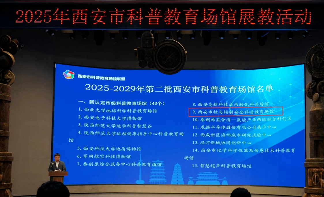11月27日,由西安市科协主办,西安市科普教育场馆联盟秘书处、陕西西影文化旅游发展有限公司、西安浐灞国际港管委会等联合承办的2025年西安市科普教育场馆展教活动在长安云·西安科技馆成功举办。活动现场宣读了“2025—2029年西安市科普教育场馆”认定名单,中陕核秦洲核安申报的“西安市核与辐射安全科普教育场馆”成功获批第二批认定名单,公司受邀出席活动。