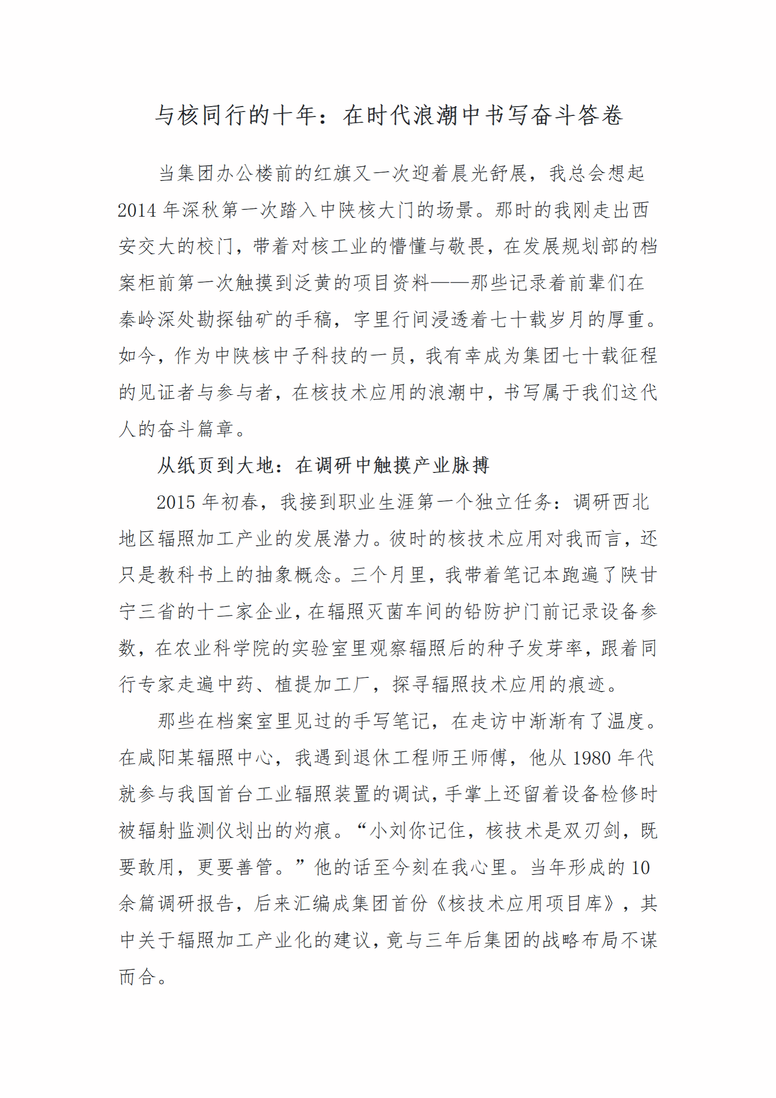 近日,中陕核工业集团有限公司“奋进七十载 建功新时代”新媒体大赛圆满落幕。经过多轮专业评审,中陕核(西安)中子科技有限公司选送作品《与核同行的十年:在时代浪潮中书写奋斗答卷》凭借真挚的情感、鲜活的叙事与深刻的主题内涵,成功斩获大赛三等奖。此次获奖作品《与核同行的十年:在时代浪潮中书写奋斗答卷》由公司综合业务部副经理刘明泽在中陕核的十年工作经历为叙事主线,生动还原了他从初入职场的懵懂青年,成长为独当一面的业务骨干的蜕变历程。...