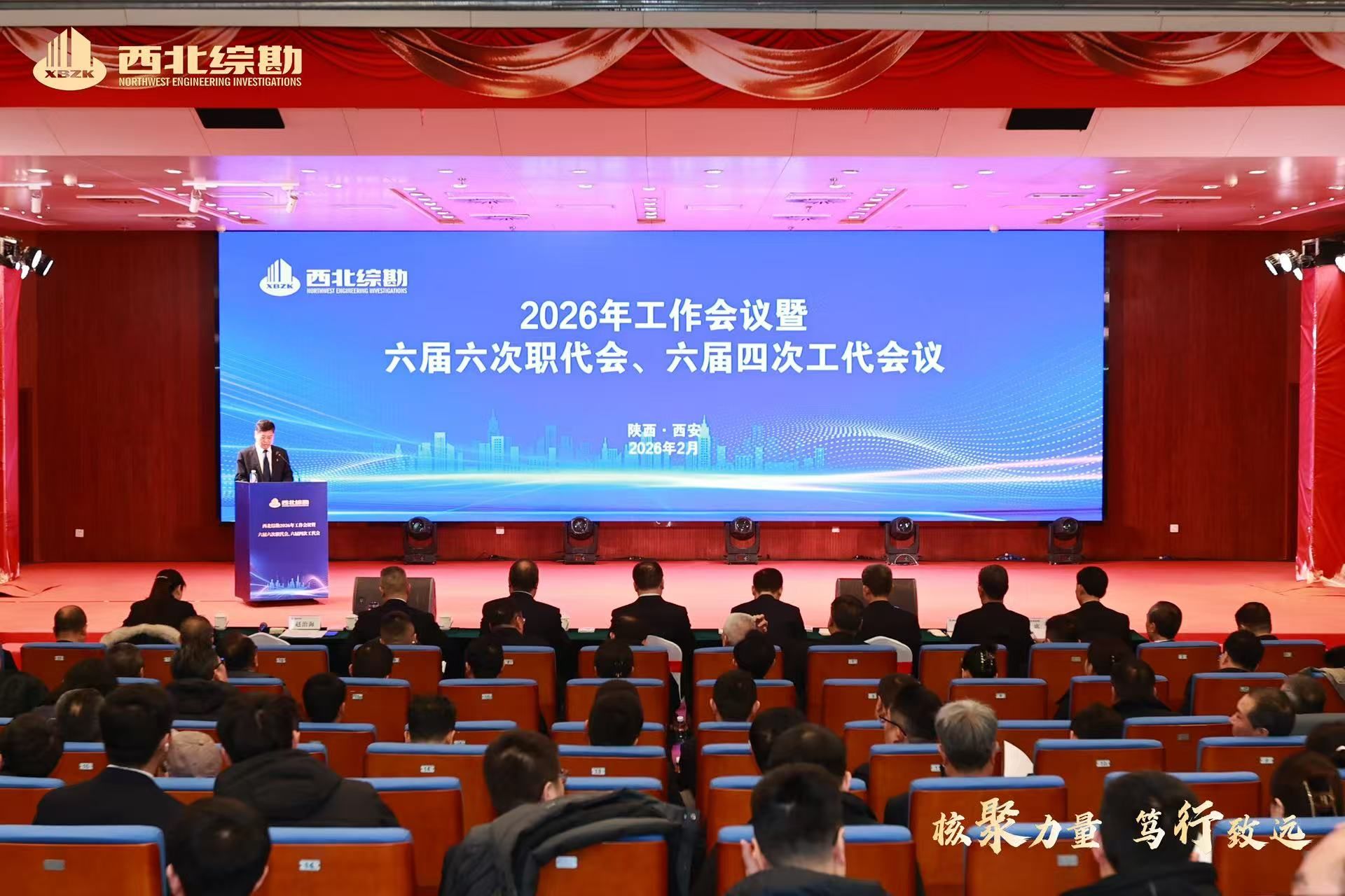 2026年2月3日,西北综勘召开 2026年工作会议暨六届六次职代会、六届四次工代会。中陕核集团党委书记、董事长朱华平到会指导并讲话。会议传达了中陕核集团三届三次会员(职工)代表大会及2026年工作会议精神,听取并审议通过了西北综勘工作报告、工会工作报告,并对各类先进进行了表彰。中陕核集团总工程师、西北综勘党委书记、董事长燕建龙,中陕核集团综合办公室主任王超宏,西北综勘党委副书记、总经理王军及其他领导班子成员出席会议。...