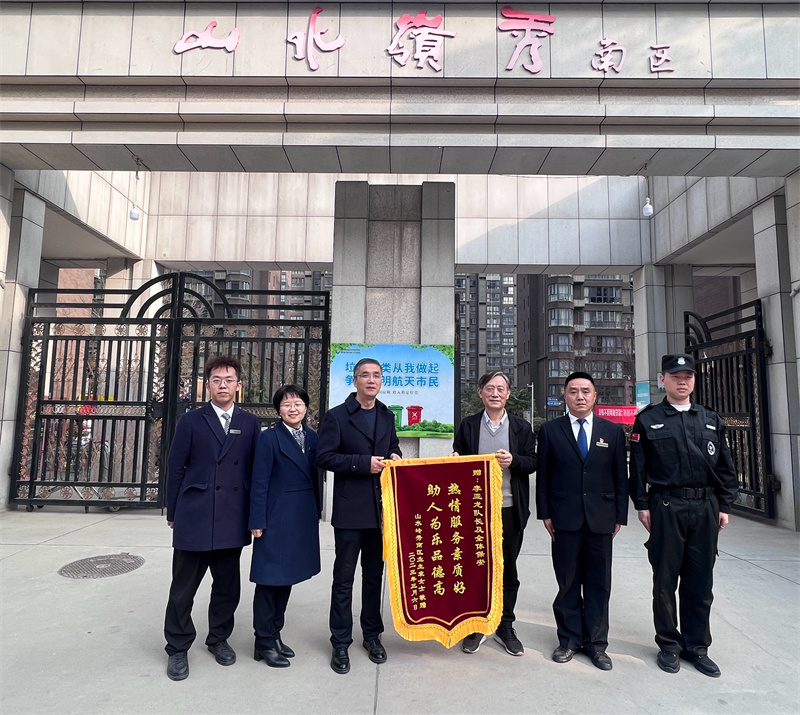 每一面锦旗都是对物业真诚服务的认同和肯定。3月6日上午,山水岭秀南区物业办收到了业主送来的一面写着“热情服务素质好 助人为乐品德高”的锦旗。置业公司党总支书记、执行董事陈海波同志及项目经理亲自接收了这面锦...