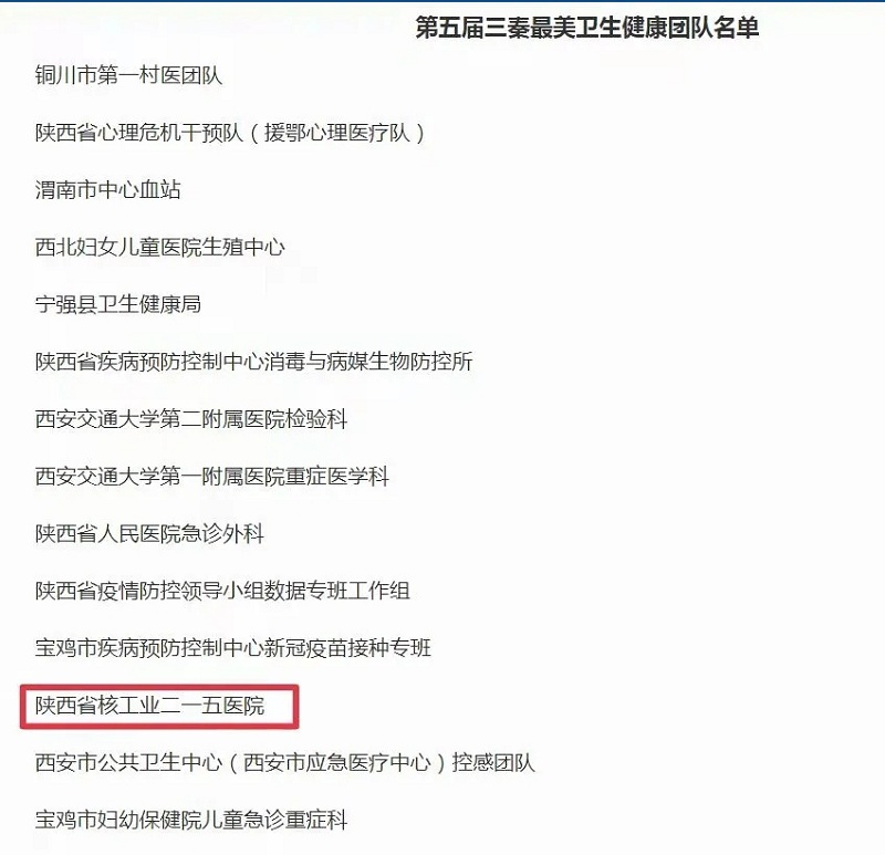 这是一个充满凝聚力的团队 以奋斗和汗水开拓创新 这是一个富有战斗力的团队 用智慧和奉献守护人民健康 在救死扶伤的道路上 谱写了一首又一首敬业奉献的磅礴交响 这就是“三秦最美卫生健康团队”——陕西省核工业二一...
